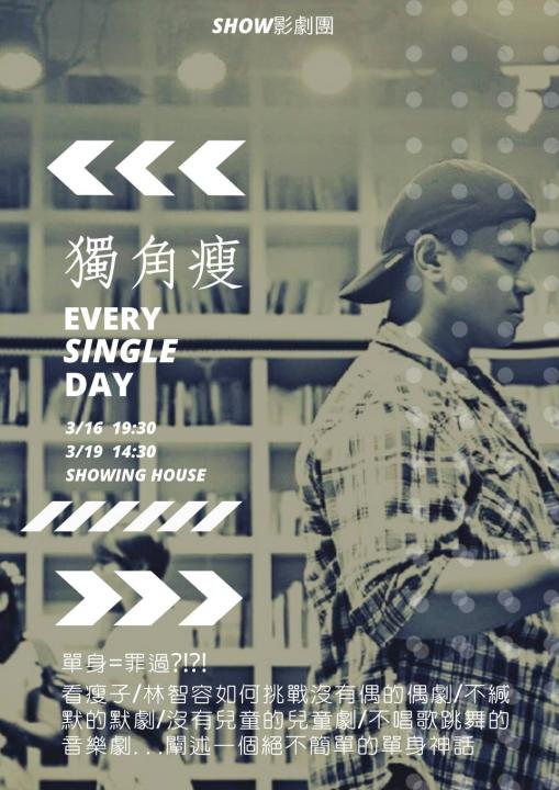 《獨角瘦》單身=罪過?! 看瘦子/林智容如何挑戰沒有偶的偶劇/不緘默的默劇/ 沒有兒童的兒童劇/不唱歌跳舞的音樂劇… 一個單身反霸凌議題:四種玩法、雙日雙格局—— 闡述一個絕不簡單的單身神話 編導演/林智容 2022 3/16 19:30 百無禁忌場 3/19 14:30 闔家歡樂場